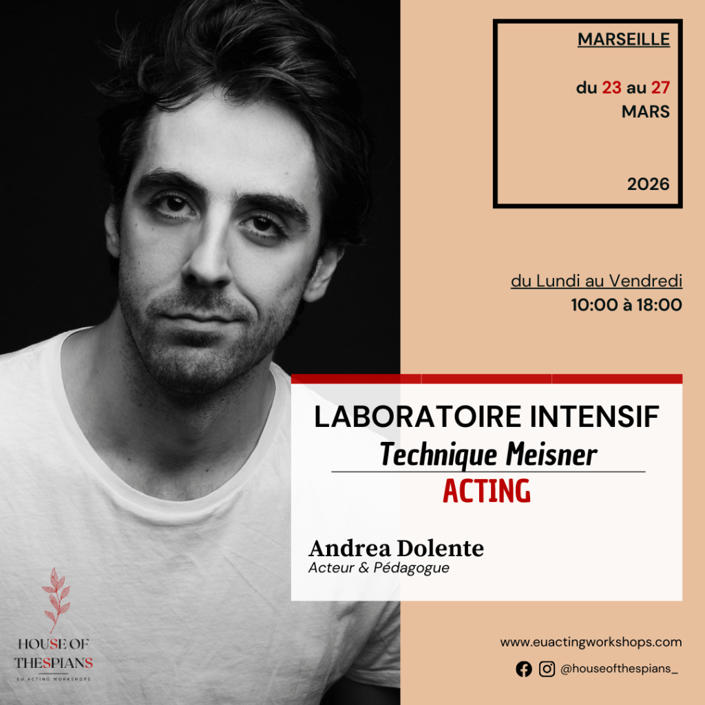 L’approche d’Andrea Dolente, profondément inspirée par la Technique Meisner, libère le potentiel de l’acteur en amenant son attention en dehors de lui-même, vers le partenaire, les circonstances, la relation. Elle soulage l’artiste de sa solitude scénique, du souci de ce qu’il “devrait” ressentir ou de son passé, et revisite ainsi la notion même du talent.